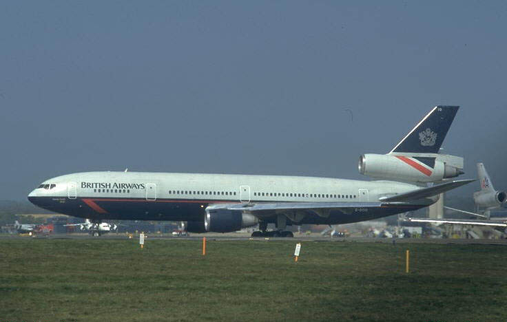 #354 is seen here in May of 1997 in London-Gatwick, the home base of BA's DC-10s. Click here to see more photos in this British Airways scheme |